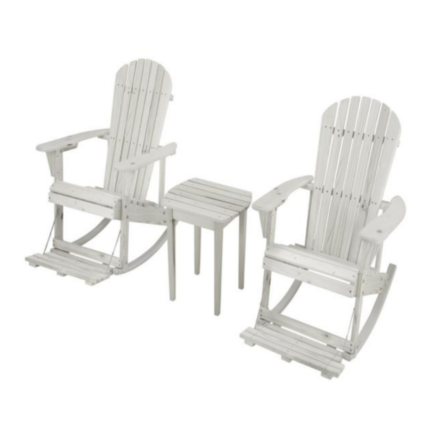 Zero Gravity Adirondack Rocker w/Footrest, Set of 2 & End Table - White